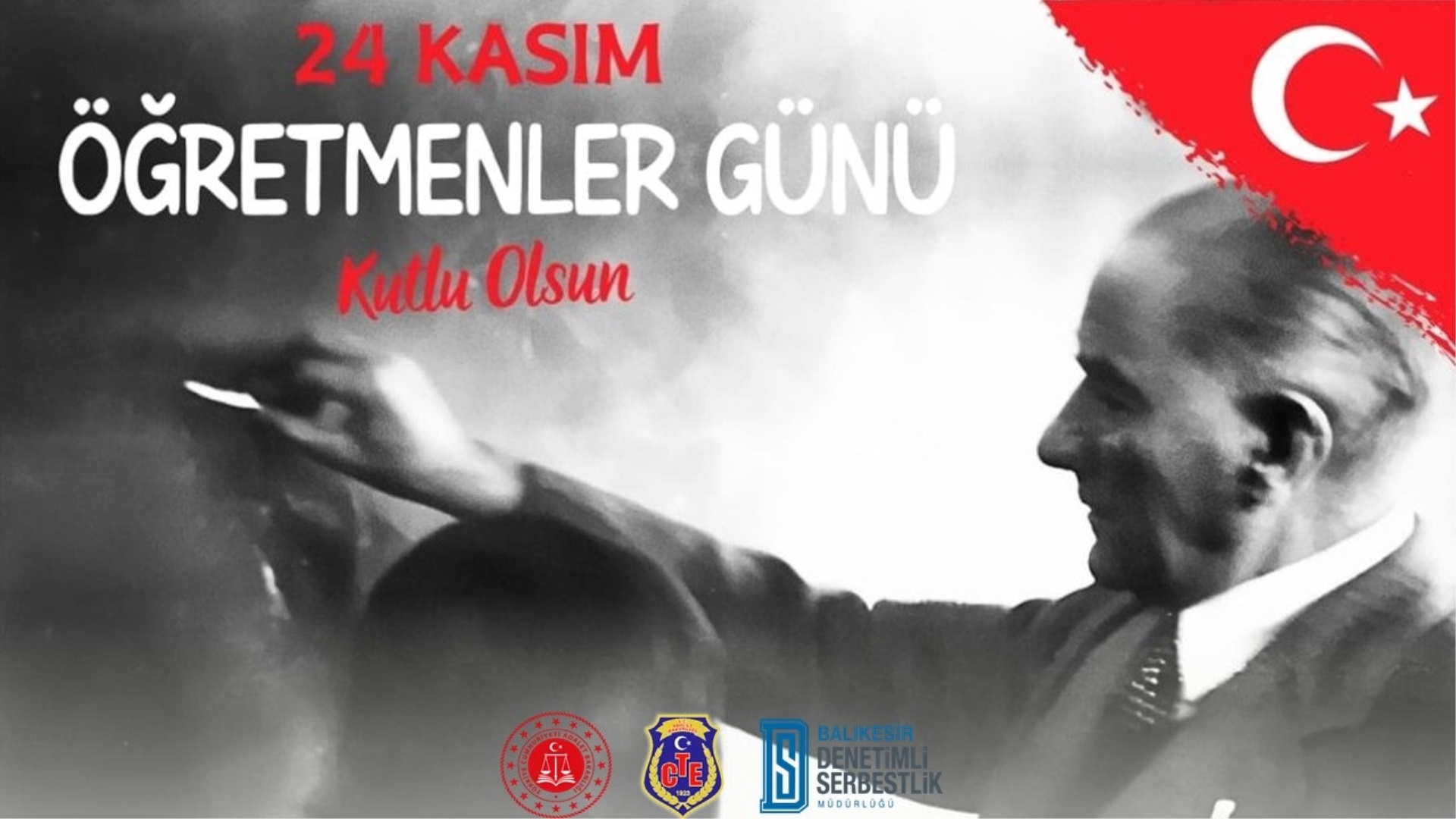 Balıkesir Denetimli Serbestlik Müdürlüğü olarak; başta Başöğretmen Mustafa Kemal Atatürk olmak üzere, tüm öğretmenlerimizin 24 Kasım Öğretmenler Gününü Kutlarız.