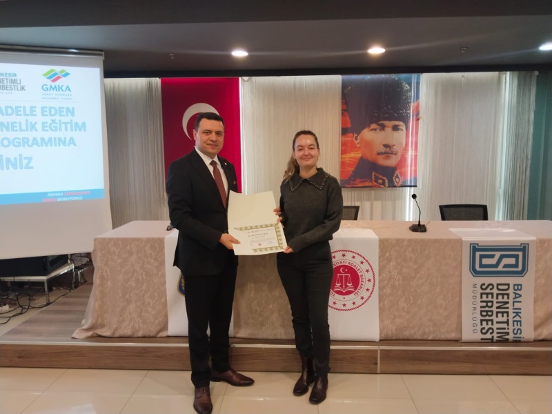 Müdürlüğümüz tarafından hazırlanan ve Güney Marmara Kalkınma Ajansı tarafından kabul edilen ‘Bağımlılıkla Mücadele Eden Profesyonellere Yönelik Eğitim Programı’nın kapanışı Balıkesir Cumhuriyet Başsavcısı Abdulkadir AKIN, Balıkesir Cumhuriyet Başsavcı Vekili Mehmet Emin Şen, Balıkesir Cumhuriyet Savcısı Erhan EROĞLU, Denetimli Serbestlik Müdürü Tuncay BAKIR'ın katılımlarıyla 24 Ekim 2025 tarihinde gerçekleşti.